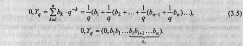 Часть дроби от разряда / до ее конца обозначим е, и примем е„ =bn/q. Очевидно, Е] = 0,Yq, тогда в (3.5) легко усматривается рекуррентное соотношение: