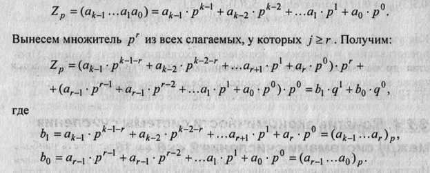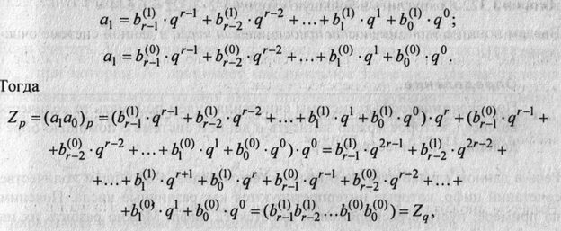 если системы счисления связаны соотношением p = qr, где г — целое число, большее 1, достаточно каждую цифру Zp заменить соответст-нующим v -разрядным числом в системе счисления q, дополняя его при необходимости незначащими нулями слева до группы в г цифр. Доказательство. Пусть исходное число содержит две цифры, т. е.