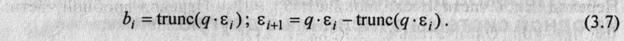 Если вновь позаимствовать в PASCAL обозначение функции — на этот раз trunc, производящей округление целого вещественного числа путем отбрасывания его дробной части, то следствием (3.6) будут соотношения, позволяющие находить цифры новой дроби: