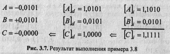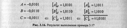 Сложить два числа в дополнительном коде (случай 4). Результат— на рис. 3.16.