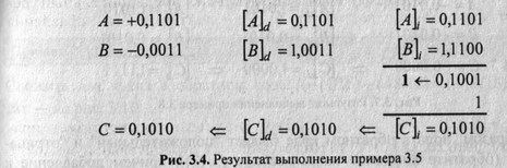 Сложить два числа в обратном коде (случай 3). Результат — на рис. 3.5.