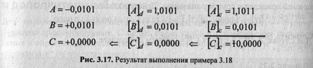 Сложить два числа в дополнительном коде (одинаковые модули, но разные знаки). Результат — на рис. 3.17.