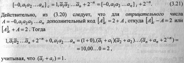 Таким образом, ноль в обратном коде бывает "положительный" и "отрицательный" (обратите внимание на выражение (3.17)), причем добавление к числу "отрицательного" нуля, как и "положительного", дает в результате значение первого слагаемого.