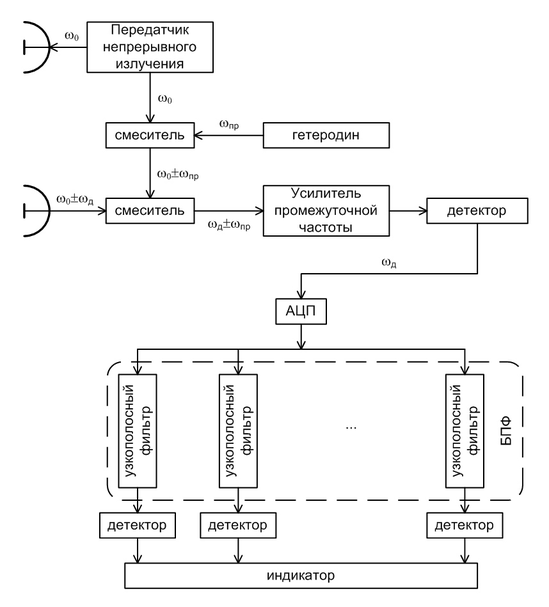 Рис. 7 – Структурная схема совмещенной РЛС непрерывного излучения