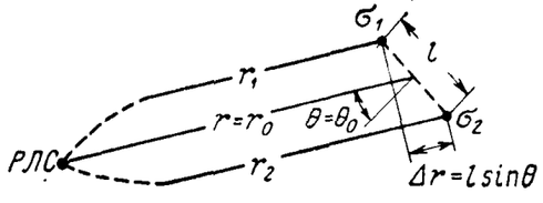Обозначим расстояние между ними l, расстояния до РЛС r1, r2