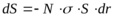 Уменьшение плотности потока энергии первичной волны на элементе пути dr равно
