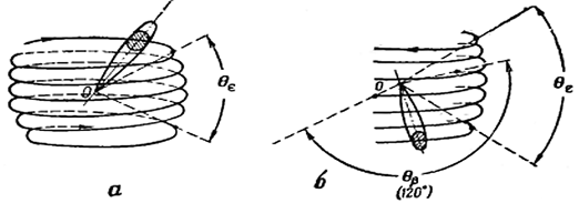 Рисунок 5 – Траектория движения ДНА при винтовом обзоре: сектор обзора по азимуту равен 360º (а) и 120º (б)