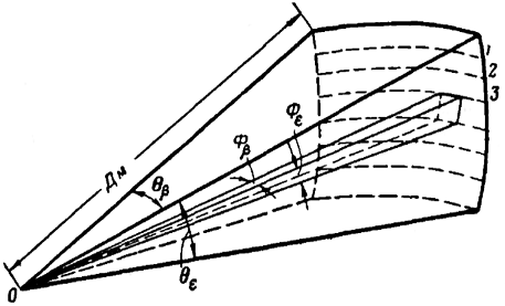 За счет последовательного перемещения луча ДНА пространство разбивается на элементы по угловым координатам.