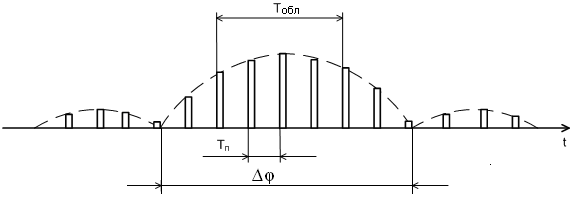 -3 дБ, то принимаемые импульсы будут иметь амплитудную модуляцию, соответствующую форме ДНА (рисунок 10).