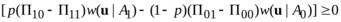 зависит от априорной вероятности наличия сигнала р и значений функции потерь