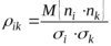 Значения ρik равны ±1, когда величины ni и nk пропорциональны (очень жесткая связь, так что произведение ni·nk всегда сохраняет знак).