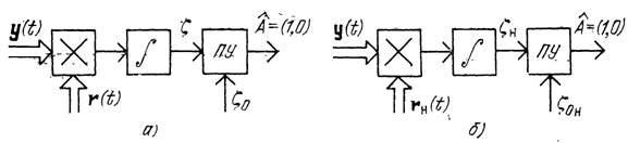 Структурные схемы обнаружителей представлены на рисунке 12 а,б. Условная вероятность правильного обнаружения определяется согласно (31) или рисунок 10.