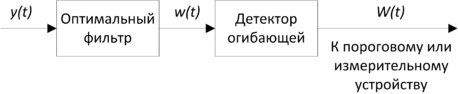 Чтобы перейти от мгновенных значений напряжения на выходе фильтра к амплитудным, следует предусмотреть в оптимальном обнаружителе детектор огибающей.
