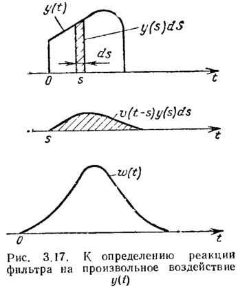 Почленно суммируя написанные равенства, находим реакцию фильтра на произвольное воздействие y(t)в виде известного интеграла свертки