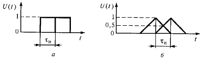 Рисунок 1 – Огибающие отраженных радиоимпульсов от двух близко расположенных целей при зондировании прямоугольными радиоимпульсами длительностью τи без внутриимпульсной модуляции: