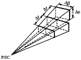 Разрешающую способность РЛС, измеряющей дальность r, азимут β и угол места ε характеризуют элементарным объемом.