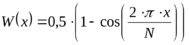 Третьим распространенным видом весовой функции является окно Ханна, его можно описать следующей зависимостью:
