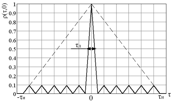 Разрешающая способность по дальности ФКМ импульса, как следует из рисунка 31, определяется длительностью одного дискрета: