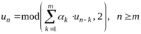 В радиолокационной технике широко применяются последовательности, которые формируются с помощью рекуррентной формулы: