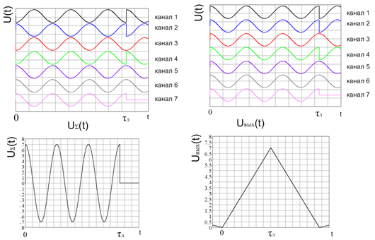 Суммарный сигнал U∑(t) поступает в СФ τд, настроенный на один дискрет, где формируется максимум корреляционной функции ФКМ сигнала (рис. 4 б).