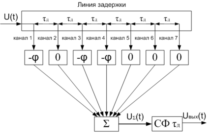 СФ представляет собой согласованный фильтр одиночного видеоимпульса длительности τд, при этом набор таких фильтров в одном канале дальности настроен на разные центральные частоты для обеспечения перекрытия фильтрами всего диапазона возможных доплеровских частот.