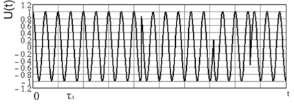 Осциллограммы напряжений, соответствующих одному дискрету ФКМ-импульса до и после СФ показаны на рис. 4 в.