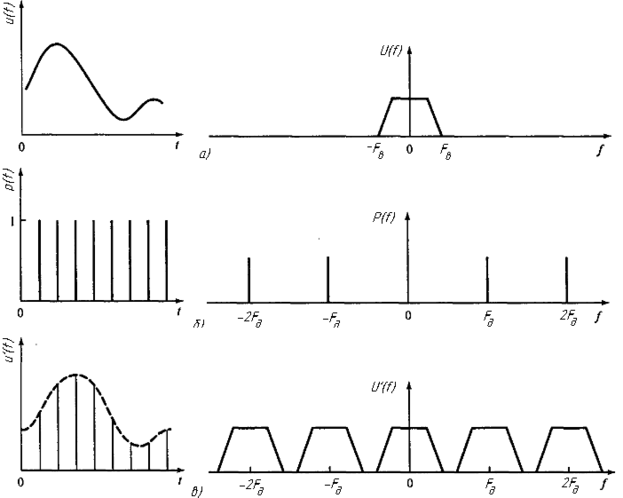 Терема Котельникова заключается в том, что для безошибочного восстановления сигнала, имеющего ограниченный спектр с наибольшей частотой Fв, дискретизацию следует осуществлять с частотой Fд ≥ 2Fв.