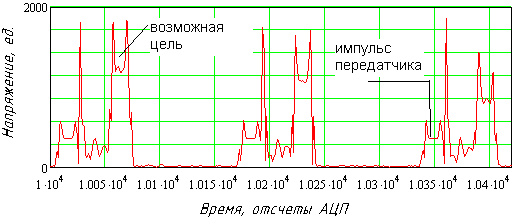 На рисунке 13 показан пример огибающей сигналов РЛС сантиметрового диапазона.