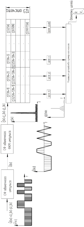 Результаты ДПФ поступают на решающее устройство, в котором определяется дальность до цели