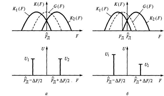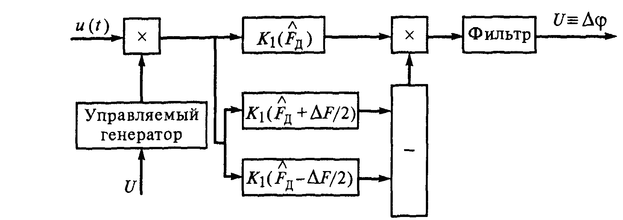 Разность напряжений на выходе детекторов (сигнал ошибки) будет пропорциональна разности априорной и текущей оценок доплеровской частоты.