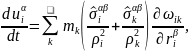 В соответствии с описанным способом дискретизации уравнения механики деформируемого твердого тела (1)-(4) в SPH-форме имеют вид (суммирование ведется по соседям i-й частицы):