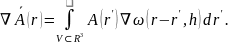 Дифференцирование полевой функции сводится в методе SPH к дифференцированию ядра аппроксимации. Рассмотрим градиент: