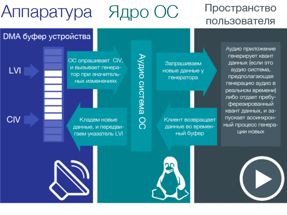 Таким образом популярные операционные системы позволяют работать со звуком в режиме мягкого реального времени благодаря нескольким основным факторам: