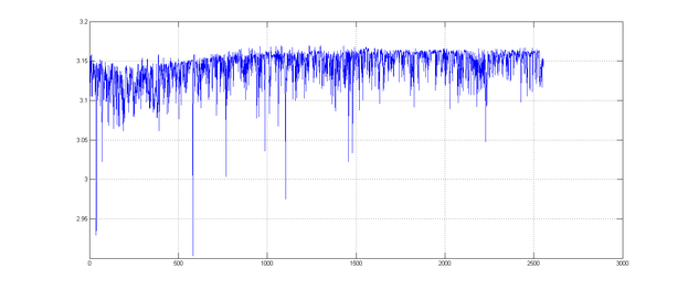 мс. Запустим тестовый стенд в агрессивном окружении –на операционной системе одновременно с нашим приложением будет работать несколько процессов, активно потребляющих CPU, имея при этом высокий приоритет исполнения. На рисунке 6 представлен один из графиков изменений величины