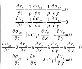 Здесь ρ – плотность среды, vi – компоненты вектора скорости, σij и εij – компоненты тензоров напряжения и деформаций,