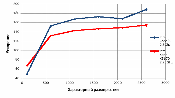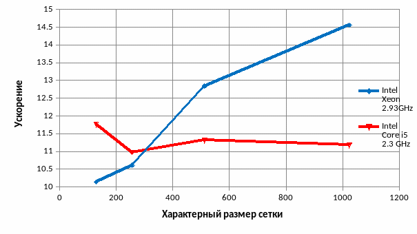 Теперь рассмотрим, какого ускорения удалось добиться.