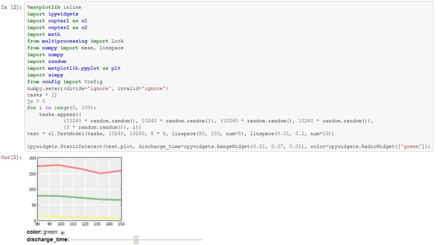 Модуль вывода графиков реализован при помощи Ipython и ipywidgets. Модуль Ipython notebook позволяет запускать код написанный на python в веб-браузере, а модуль ipywidgets дает возможность создавать динамические графики в notebook.
