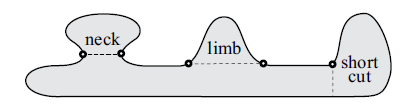 Данный метод основан на анализе поведения границы формы, а точнее на особенностях её изменения при переходе между частями. Важным аспектом является то, что выделенные части последовательно удаляются и дальнейшая декомпозиция идет без их участия. Выделают 3 типа частей: «шея», «конечность» и «отрез».