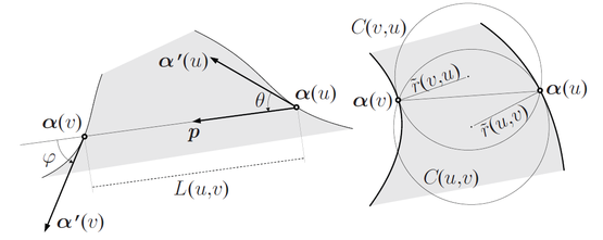 Из определения следует, что движение симметричной пары точек по скелету сглаженной локальной симметрии перпендикулярно градиенту асимметрии