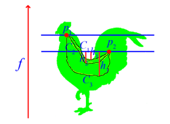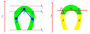 Очевидно, что количество путей в C(p1, p2) может быть бесконечным. Для каждого пути вводится понятие вогнутости. Пусть точка p принадлежит пути С, соединяющем p1 и p2 и пусть f(p1) ≥ f(p2), тогда: