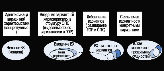 Для обеспечения требуемой вариабельности семейства программных продуктов, в ОКМ выполняются следующие шаги (рис.10) [15].