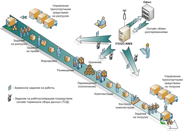 - планирования, учета, выдачи и контроля выполнения складских процессов и реализации заказов клиентов на складе предприятия;