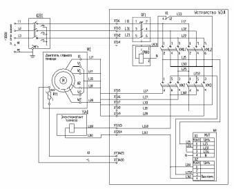 6. пускатели главного привода КМ1, КМ2, КМ3 (нерегулируемый привод), КМ2, КМ3 (регулируемый привод);