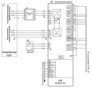 Схема подключения ACSM1 к устройству управления УЭЛ представлена на рисунке 1.8.