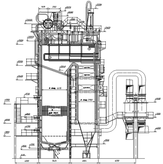 топочной камеры 4, конвективных газоходов 24 и ограждающую стены от воздействия высоких температур.
