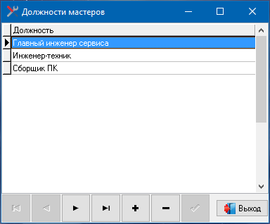 Модуль Post.pas – модуль для ведения справочника «Должности мастеров», позволяет создавать, редактировать и удалять данные о должностях матеров сервисного центра. Экранная форма модуля Post.pas представленна на рисунке 3.11.