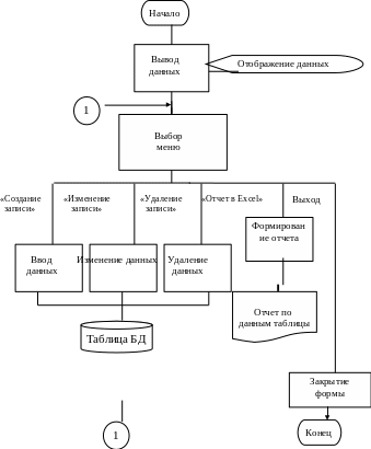 Алгоритмы по редактированию данных и занесению их в базу, а также алгоритмы, осуществляющие удаление информации из базы данных, также являются типовыми. Алгоритм работы с любой формой программы представлен на рисунке 3.4.