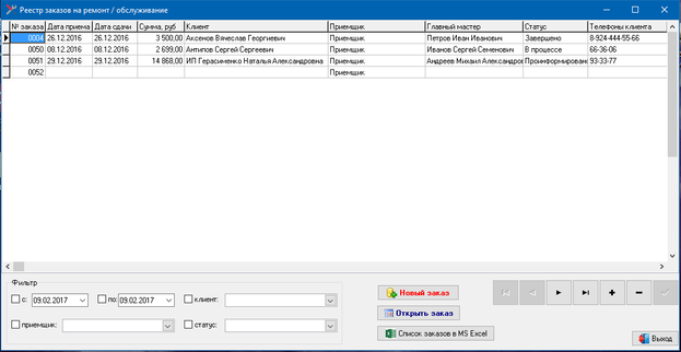Модуль OrderList.pas – модуль для ведения реестра заказов, позволяет создавать, редактировать и удалять данные о заказах сервисного центра. Особенностью реализации является возможность фильтрации данных в списке по заданным критериям. Также к модулю подключен модуль Reports.pas, позволяющий пользователю при необходимости сформировать отчет в формате MS Excel по данным представленным на экранной форме и распечатать его.