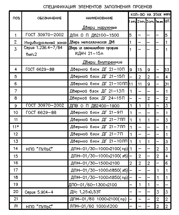 Спецификация элементов заполнения дверных проемов приведена в таблице 1.15.