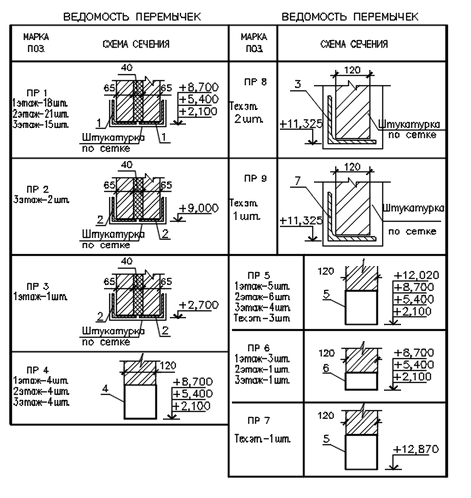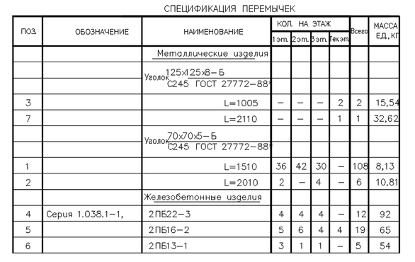 Таблица 1.15 – Спецификация и ведомость перемычек